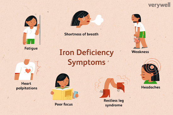 శరీరంలో ఐరన్ లోపం వలన కొన్ని సమస్యలు వస్తాయి. ఉదాహరణకు, గుండె వేగం పెరగటం, చేతులు చల్లబడటం, తలనొప్పి, జీర్ణసమస్యలు. ఐరన్ లోపం వలన రోగనిరోధక శక్తి బలహీనం అవుతుంది, దీనివల్ల తరచుగా జ్వరాలకు గురికావటానికి అవకాశం ఉంటుంది. ఆలోచన చేయడం, జ్ఞాపకశక్తి తగ్గిపోవచ్చు. అలసట, బలహీనత, జుట్టు రాలడం వంటి ఇతర సమస్యలు కూడా ఉండవచ్చు.
